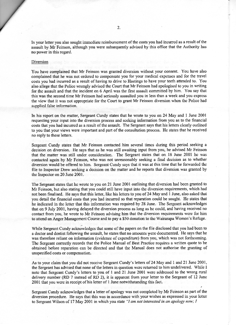 This protest at the refusal by the Masterton Police to investigate these matters was explicit in the paragraph 5 that was inadvertently omitted from the letter actually sent to you.
