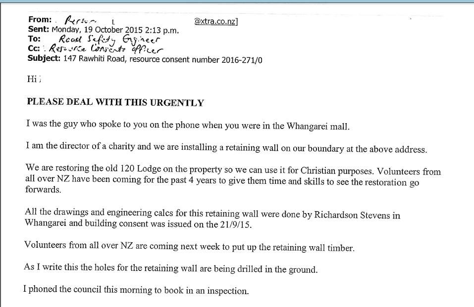 In an email to the Far North District Council dated 19 October 2015 he claims he's the Director of "a charity":